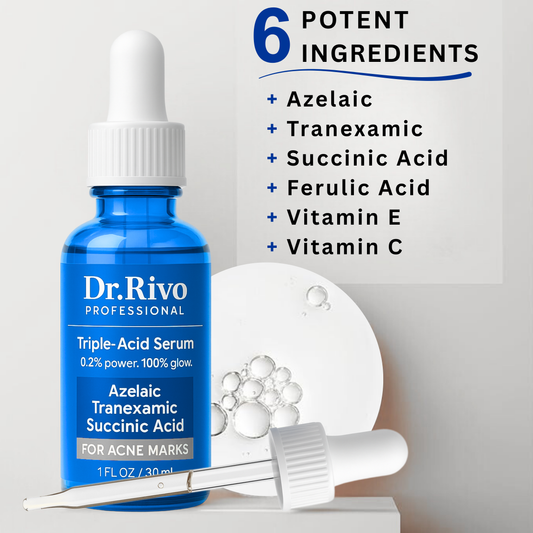 I have sensitive skin and was worried about using acids, but the Dr. Rivo Professional Triple-Acid Face Serum is so gentle yet effective. It absorbs instantly and doesn’t feel heavy on the skin. After just 3 weeks, my acne scars have reduced visibly and my skin looks brighter and glowing. I love how quickly it shows results without irritation.