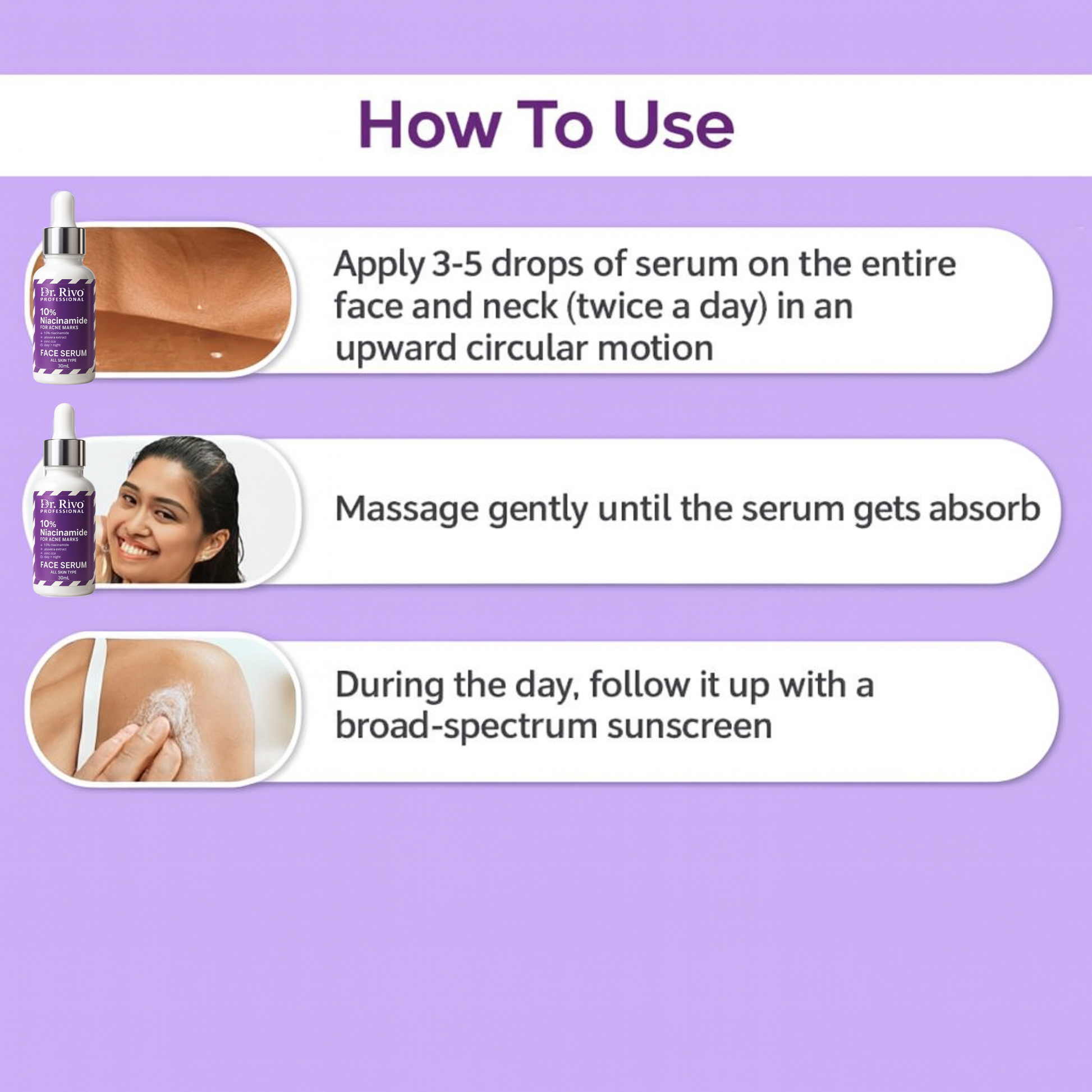 Achieve smooth, spotless, and glowing skin with the Dr. Rivo Professional 10% Niacinamide Face Serum, scientifically crafted to target acne marks, dark spots, and uneven tone.